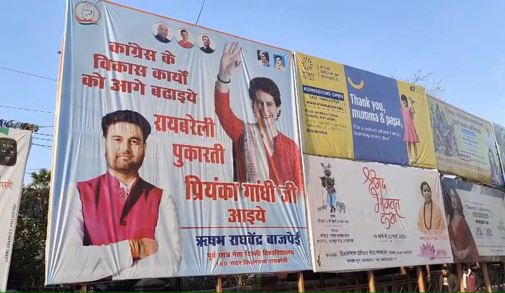 यहां पर 5 दिन पहले पोस्टर लगाए गए थे। मंगलवार की रात फिर पोस्टर लगा दिए गए हैं। इन पोस्टरों पर यह लिखा है कि रायबरेली से चुनाव लड़े और विकास कार्य को आगे बढ़ाएं। जानकारी के अनुसार, बताया गया है कि पोस्टर दिल्ली विश्वविद्यालय के पूर्व छात्र ऋषभ राघवेंद्र वाजपेई की तरफ से लगाया गया। पहले जो पोस्टर लगाए गए थे, इन्होंने ही लगाया था।